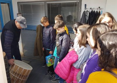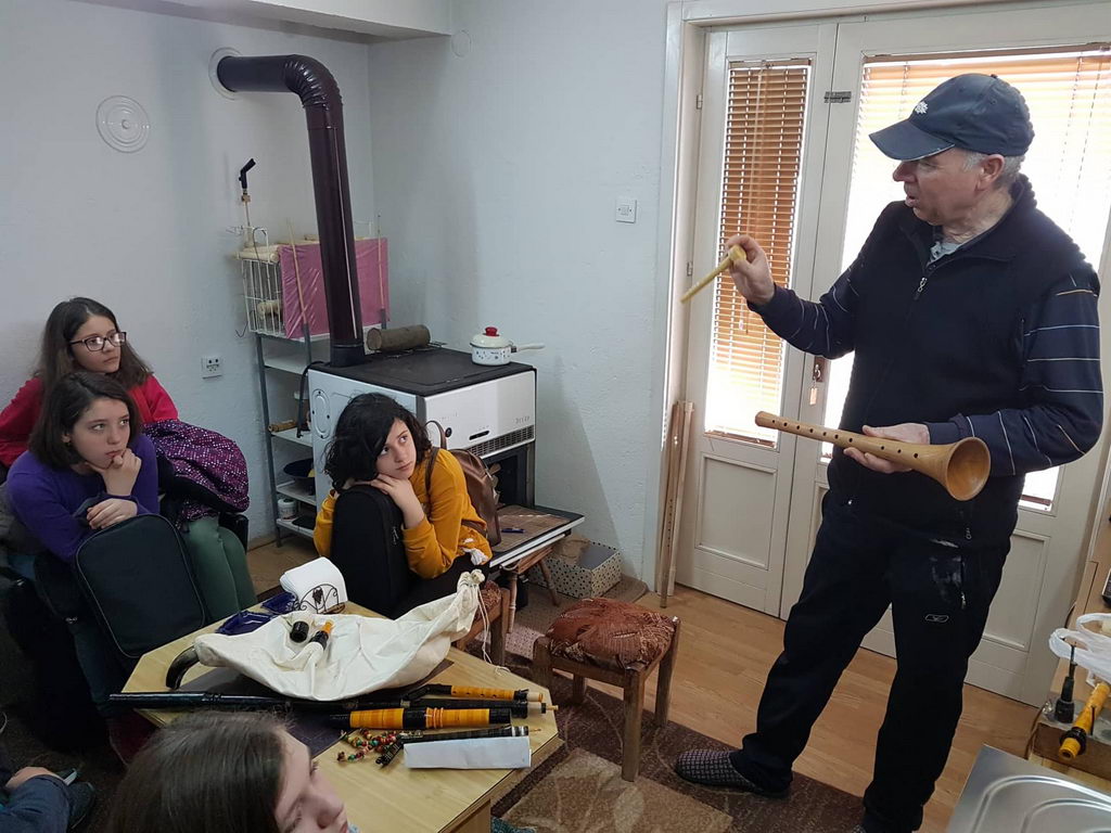 Учениците од четврто одделение го посетија Љубен Јуртоски кој е изработувач на народни инструменти. Таму чичко Љубен детално ги запозна учениците со процесот на создавање на народни инструменти.
